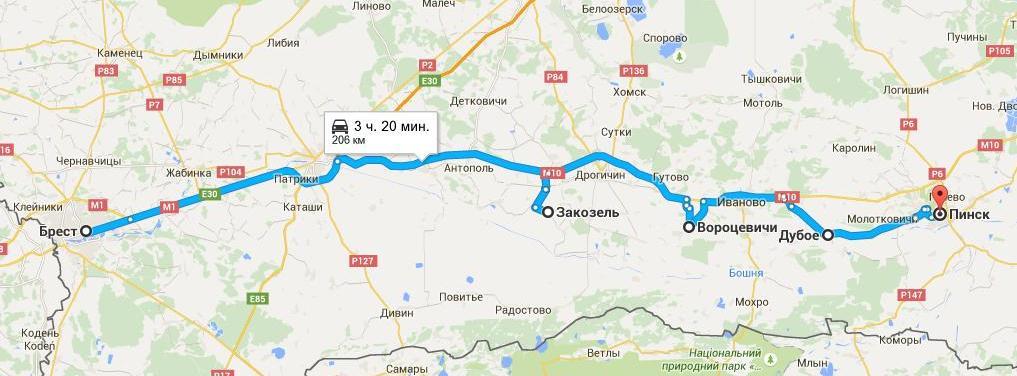 Маршрут 1. Брест — Закозель — Вороцевичи — Дубое — Пинск