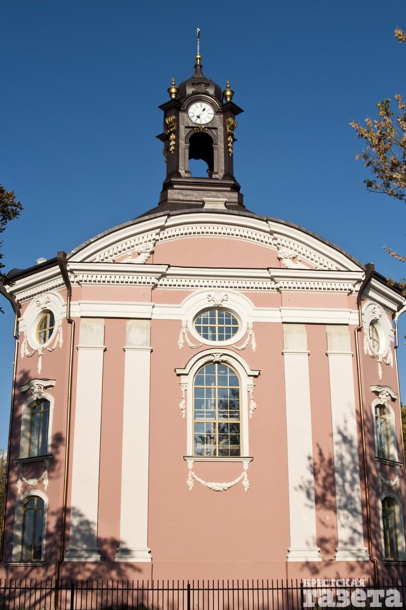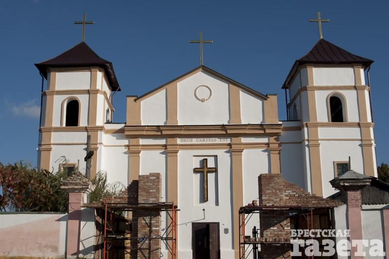 Сейчас здание реставрируют. Строительные леса уже убрали, поэтому можно в полной мере восхититься красотой костела.