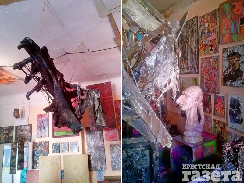 В пространстве Елены Петровой пахнет травами: художница создает арт-объекты только из природных материалов. В гостях у Евгения Кутаркина «оживают» чайники и ключи. Они крутятся и звенят, и кажется, будто комната дышит. В пространстве Галины Васильевой — царство геометрии. В комнате, где работает Кирилл Демчев, обломки стульев превращаются в скульптуры. Дом часто сравнивают с парижским Ульем. С той разницей, что в витебском пространстве художники только работают, но не живут.