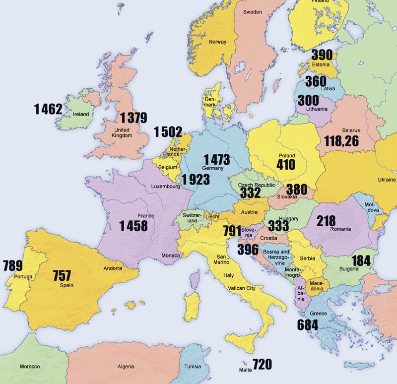 Кроме Люксембурга минимальная зарплата превышает 1 000 евро в месяц в Нидерландах и Бельгии (1 502 евро), Ирландии (1 462 евро), Франции (1 458 евро), Германии (1 473 евро), Великобритании (1 379 евро).