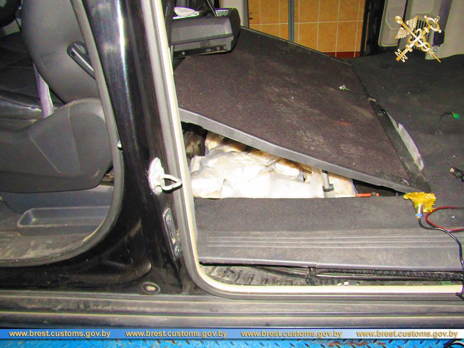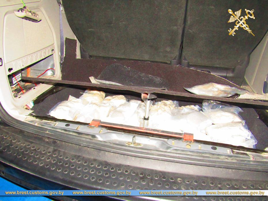 Крупную партию наркотиков выявили сотрудники Брестской таможни. По данным ведомства, 38-летняя гражданка РФ следовала через пункт пропуска «Домачево» на «Крайслере» 2010 года выпуска, в котором и были спрятаны упаковки с психотропами и наркотиками.