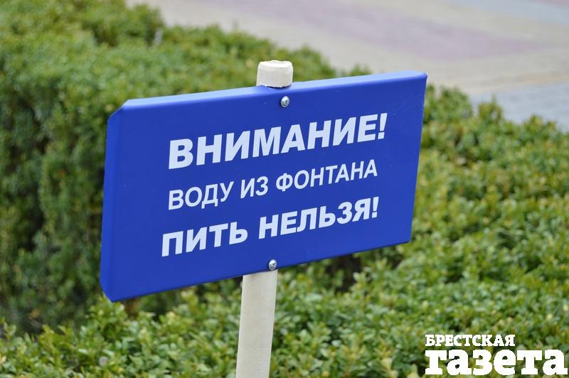 «Купаться» в этом фонтане благо не запрещено, а вот пить из него не советуют, о чем свидетельствуют таблички.