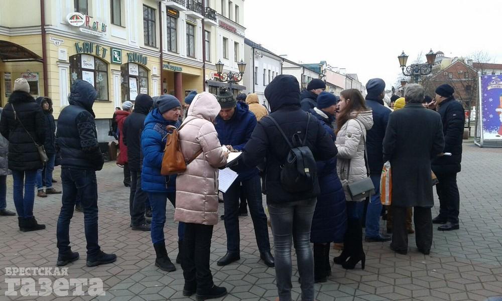 Сбор подписей под заявлением с требованием провести общественные обсуждения продолжился и сегодня, 12 января, на площади, а также во время традиционной прогулки по улицам Пушкинской и Советский до кинотеатра «Беларусь».