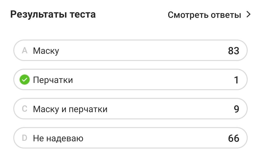 Согласно результатам опроса в нашем Instagram, его участники более ответственно подходят к безопасности своего здоровья и окружающих. Так 83 из 159 проголосовавших пользователей отметили, что при поездке в общественном транспорте надевают маску, 1 – перчатки, 9 – и то, и другое, а 66 признались, что ездят в автобусах, троллейбусах и маршруток без такой санитарной защиты.