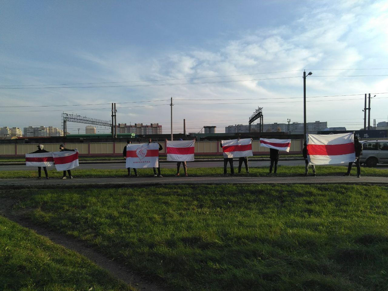 В Бресте протест бело-красно-белый в микрорайонах, где выстроились цепи солидарности.