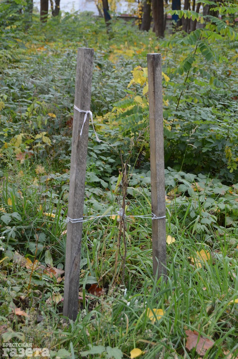 Спустя год, 22 октября, корреспондент «БГ» решила посмотреть, как поживают молодые деревья. Только вот из-за разросшегося кустарника, травы и крапивы не сразу обнаружила аллею многодетных. Если бы не деревянные подпорки для саженцев и ленточки, которые вешали семьи по количеству детей, аллея и вовсе осталась бы незамеченной. Некоторые деревца из-за окутавшей их акации высохли, на месте других и вовсе остались лишь деревянные палки.