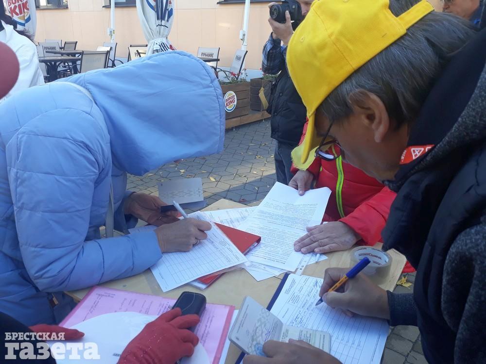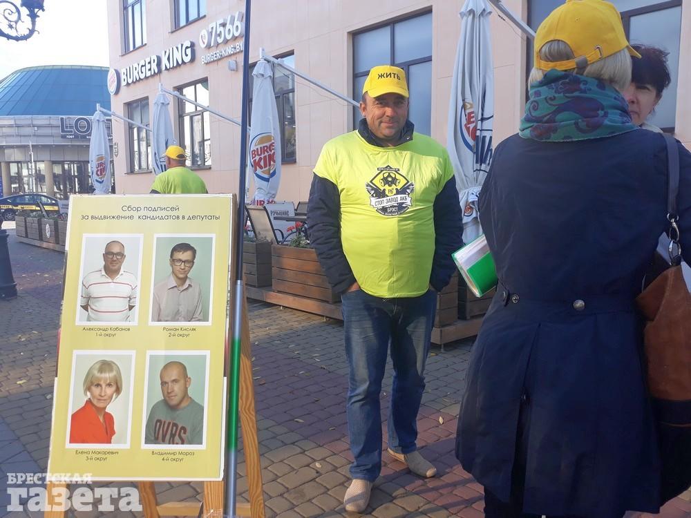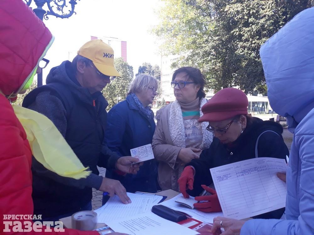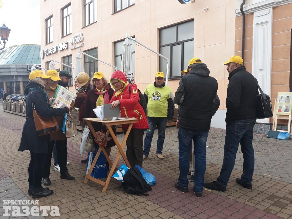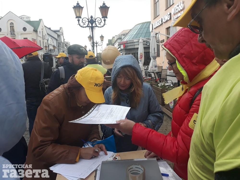 С 18 сентября сбор подписей в Бресте и районе начали инициативные группы активистов борьбы со строительством под Брестом аккумуляторного завода. Их легко узнать по желтым бейсболкам со словом «ЖИТЬ», желтым шарфам и майкам.