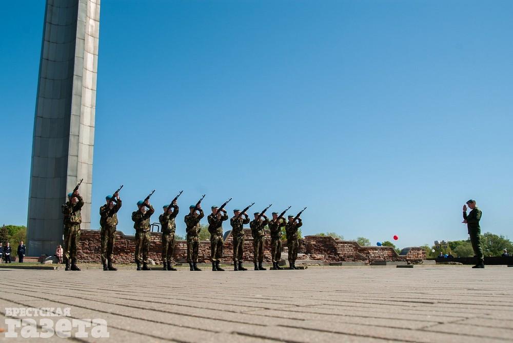 Руководство области и города, ветераны, представители общественных организаций, трудовых коллективов, молодежь 9 Мая традиционно организованной колонной проследовали к Брестской крепости. Вместе с брестчанами в мемориальный комплекс пришли гости города. К Вечному огню и плитам некрополя возложили цветы, память павших на войне почтили минутой молчания.