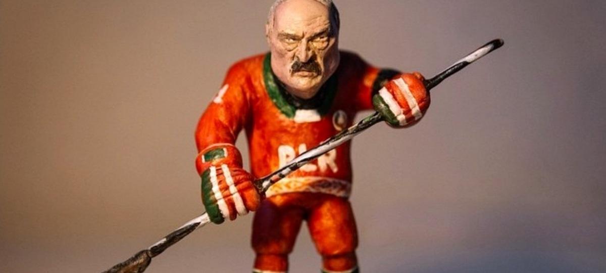«Нежный сувенир для иностранных гостей «Бацька с касой»… Когда узнал, что хоккей не включили в программу Европейских игр))», — написал мастер в комментарии к фото 10 сантиметровой фигурки.