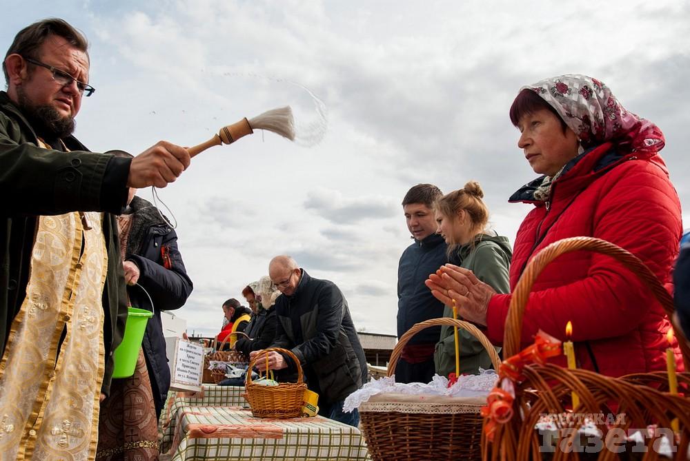 В храм в честь святого праведного Иоанна Русского, который находится в микрорайоне Ковалево в районе жилой застройки между улицами Суворова и Ясеневой, пришло не мало людей. Некоторые из них были в защитных масках. Люди ставили корзинки со снедью на специальные столы на улице.