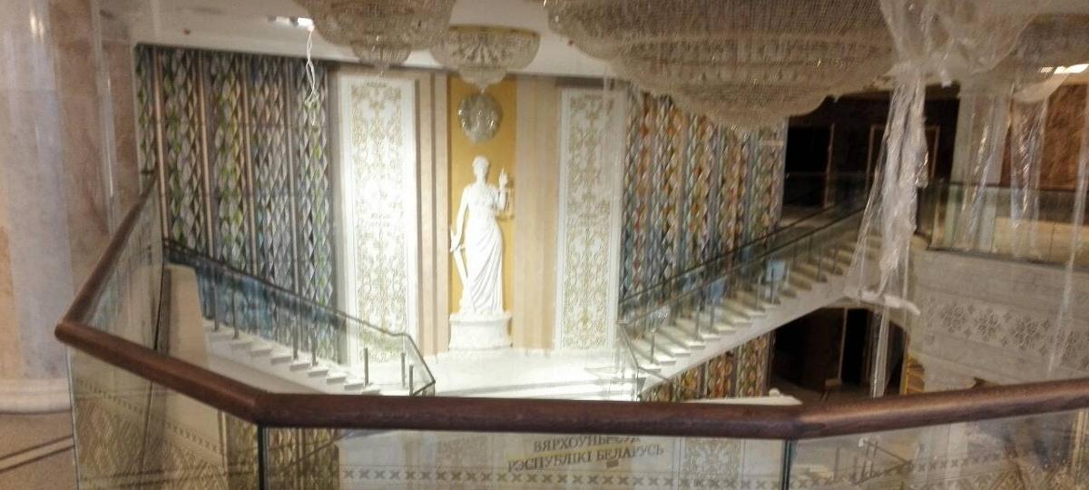 Строительные работы внутри Верховного суда должны закончиться в 2019 году, однако фото нового здания уже появились в Сети. Показал интерьеры суда портал tut.by.