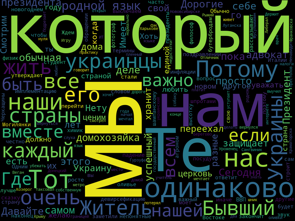 Президент Беларуси Александр Лукашенко, глава Российской Федерации Владимир Путин и президент Украины Владимир Зеленский под бой курантов поздравил граждан и гостей страны с Новым 2020 годом. С помощью сервиса «Облако слов» мы посмотрели, какие слова чаще всего звучали в их речах.