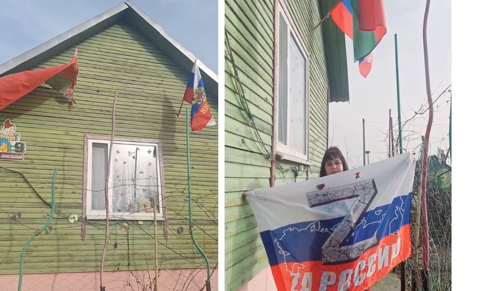 На днях в Сети появилось видео, как в Бресте женщина ходила по городу с конструкцией из российского флага с Z-символикой, красного полотнища и государственного беларуского. К ней подошли двое местных жителей, которые поинтересовались, с какой целью она гуляет по городу с такой конструкцией, и стали снимать на видео. ГУБОПиК пообещал наказать их.