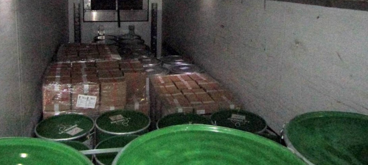 Весогабаритный контроль показал, что грузовик DAF на несколько тонн тяжелее, чем указано в документах. Фуру направили «на рентген». После сканирования выяснилось, что в грузовом отсеке находится 12 «неучтенных» бочек с концентратом сока красного грейпфрута.