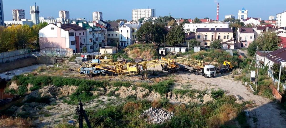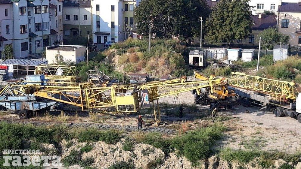 Фото, на котором виден демонтируемый кран на площадке строящегося в центре Бреста «Прибужского квартала», 13 сентября прислала читательница «БГ».