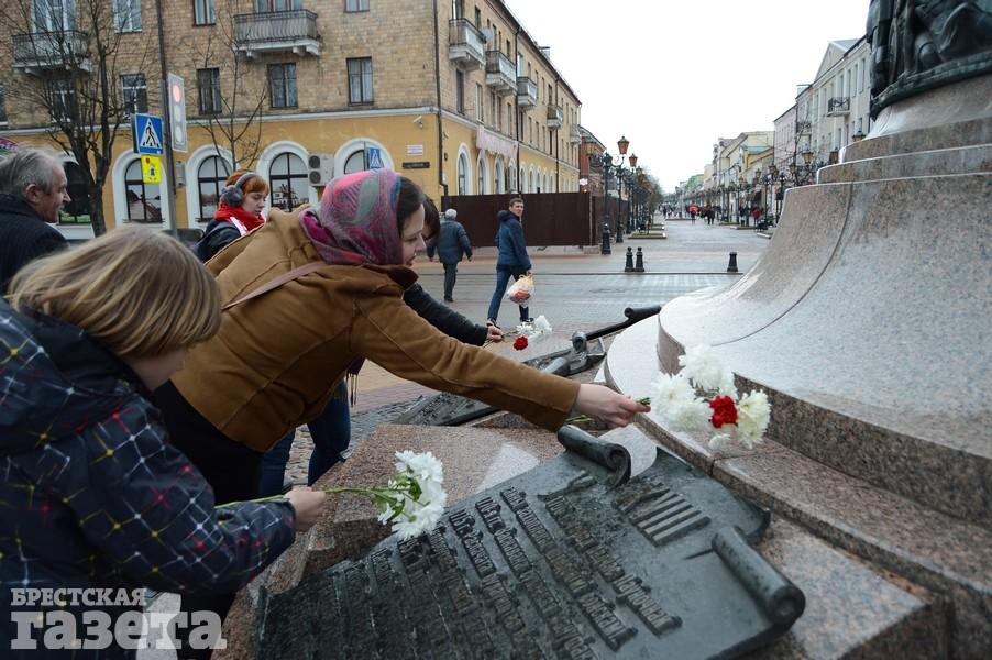 Брестчане поздравили друг друга в Днем Воли и возложили цветы у памятника 1000-летию Бреста.
