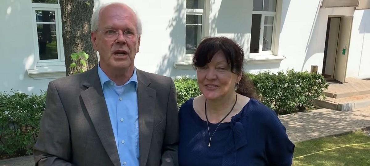 «Паважаныя сябры, для нас падышоў час вяртацца дадому. Мы дзякуем вам за цудоўныя гады разам з вамі ў Беларусі. Ну, усё, мы пайшлі», — говорят посол Германии Петер Деттмар с супругой Илькой в прощальном видео.