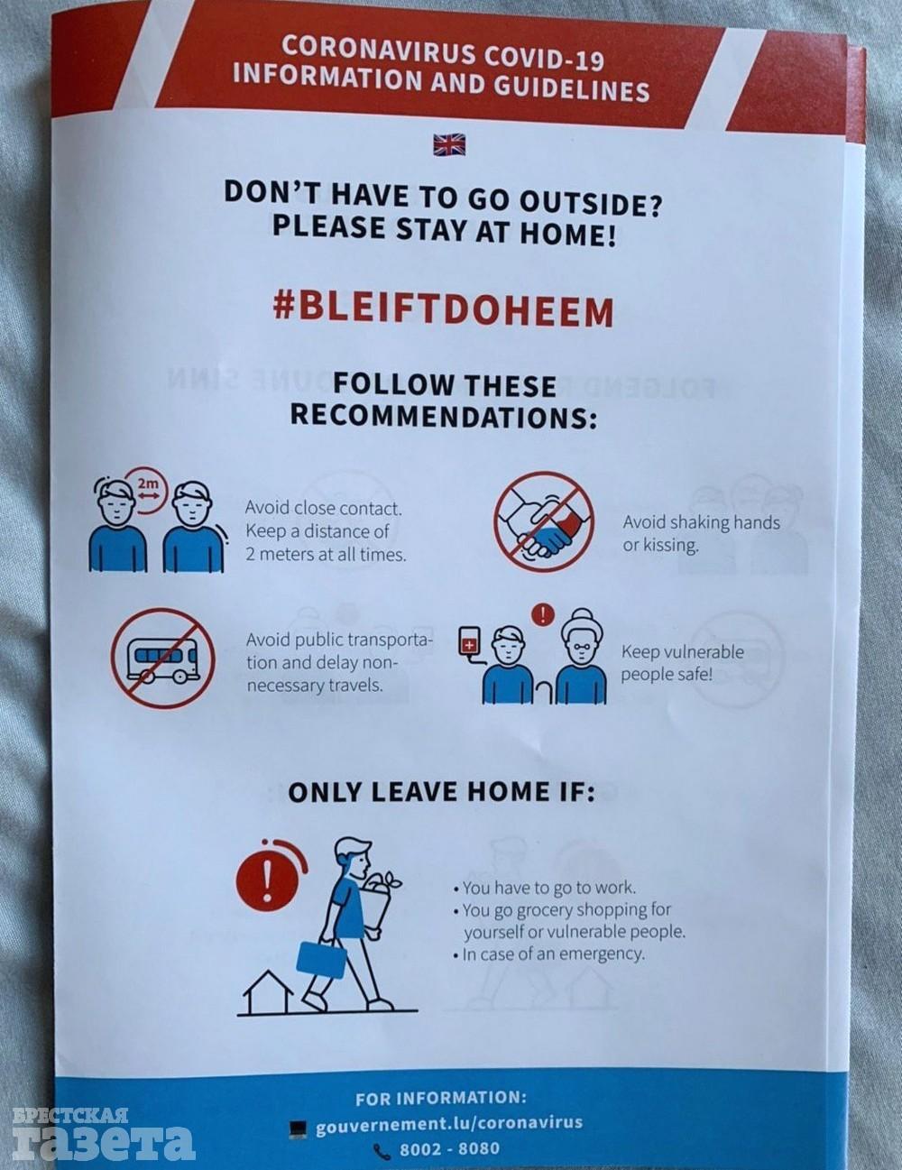 Виктория рассказывает, что с информированием в стране проблем нет: в интернете каждый день публикуются последние официальные данные по теме коронавируса. А еще до карантина всем прислали памятки с правилами, рекомендациями, телефонами горячей линии. Пройти тест на коронавирус «на всякий случай» в Люксембурге, как и в Беларуси, нельзя.