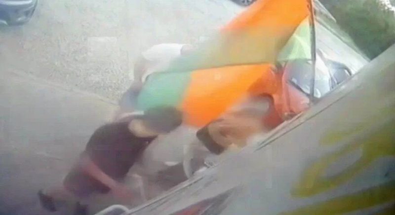 В Кобрине 23-летний парень при входе в магазин случайно задел головой государственный флаг Беларуси. На эмоциях он сорвал его и кинул на землю. Этот момент попал на камеру наружного наблюдения магазина, пишет брестская «Весна» со ссылкой на провластные телеграм-каналы.