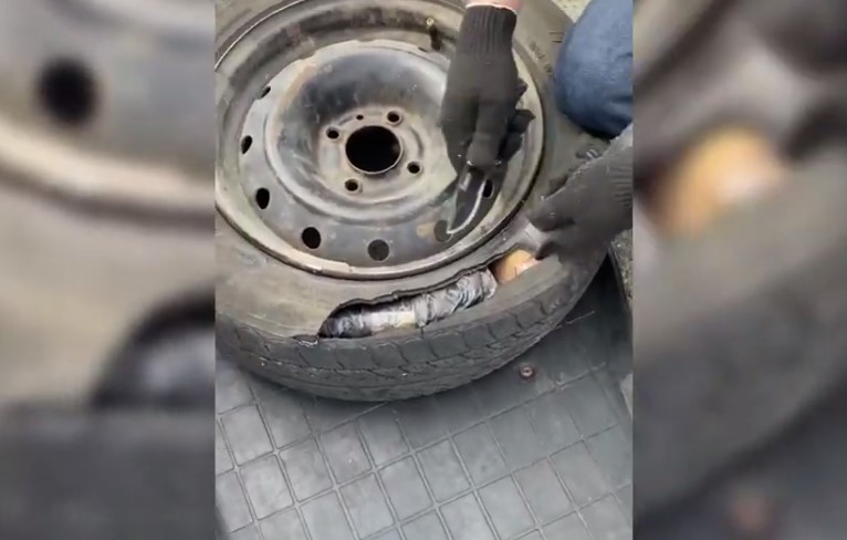 Ехал мужчина на собственной машине. Судя по оперативному видео, таксист вез экстази в колесе. Вероятно, в запасном.