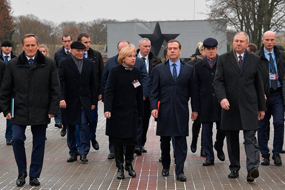 Вместе со своим белорусским коллегой Сергеем Румасом Медведев почтил память погибших защитников крепости — премьеры возложили венки к Вечному огню.