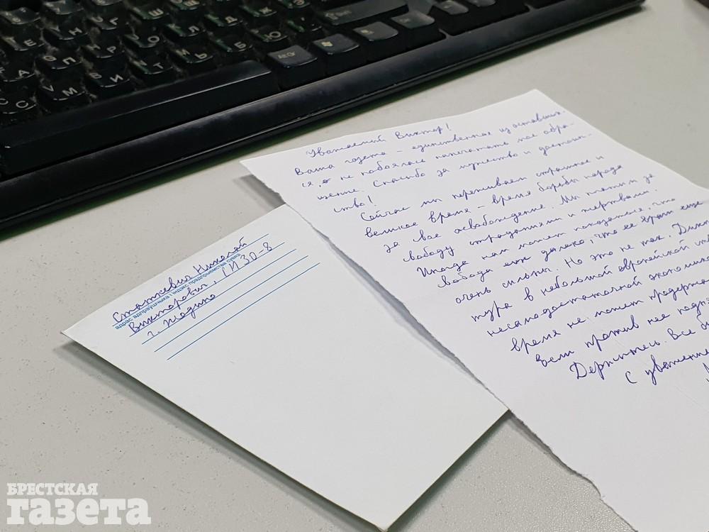 Письмо от белорусского политика, а ныне политзаключенного, пришло на адрес редакции 30 ноября.