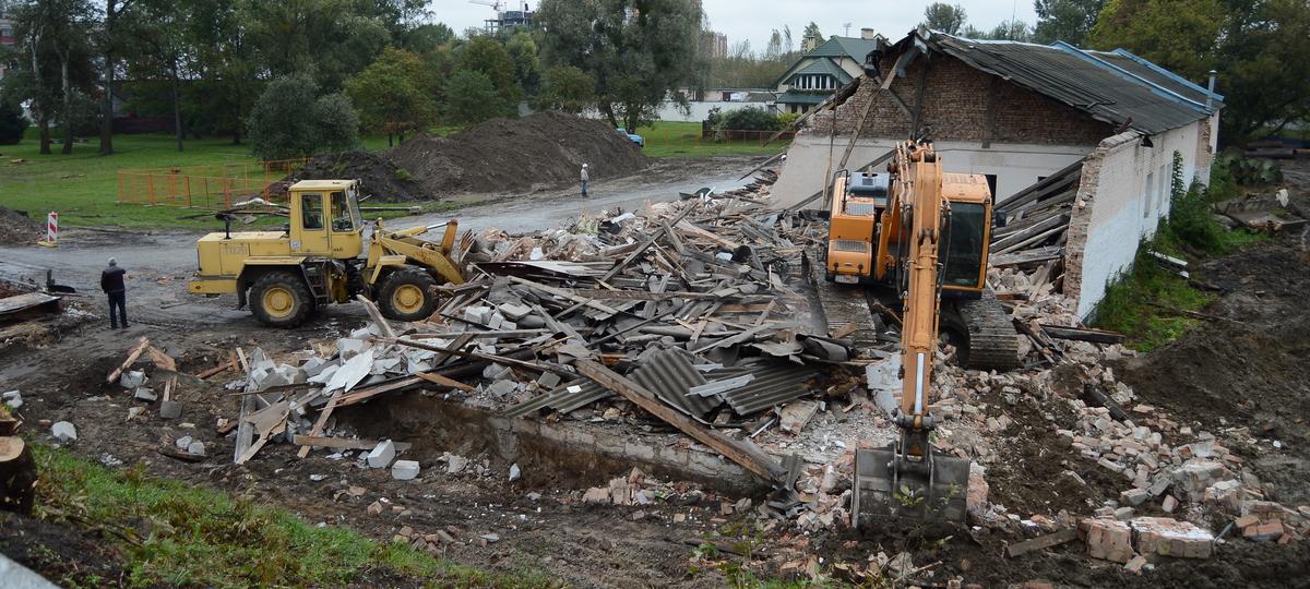 Под снос пошло одноэтажное здание довоенной постройки, где в советские времена были складские помещения, а до недавних пор — магазин. Во время сноса найдены документы, согласно которым здесь был склад №3, где хранились наручные часы, ткани, галстуки и т. д.