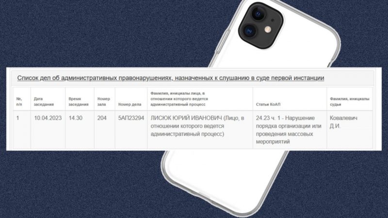 В суде Березовского района 10 апреля рассматривали административное дело 54-летнего токаря ОАО «Нарутовичи» Юрия Лисюка. Поводом стал бело-красно-белый чехол на телефоне мужчины, сообщает брестская «Весна».