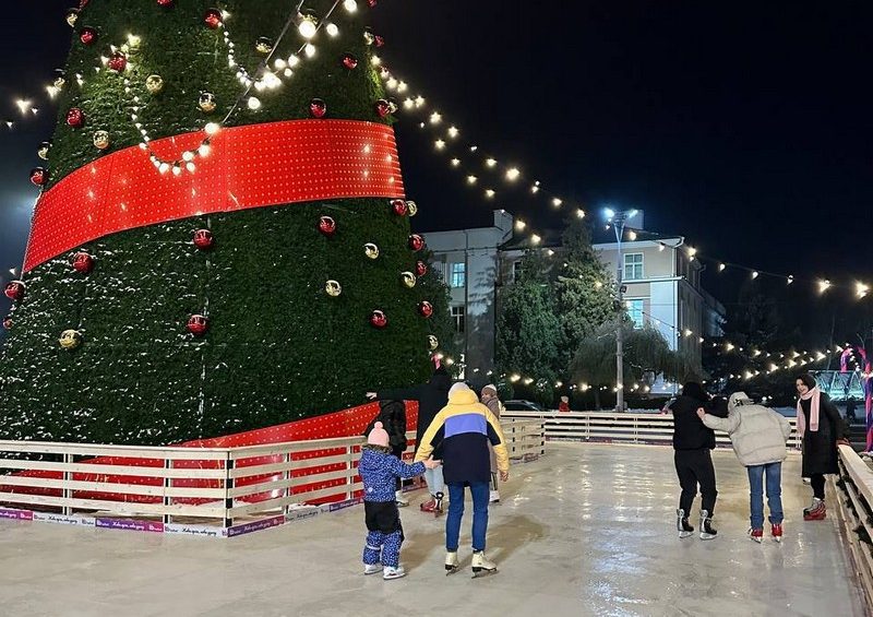 В Бресте на площади Ленина вокруг елки открыли каток, но оказалось, что кататься там невозможно