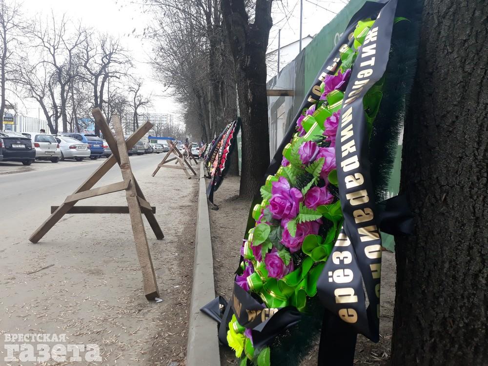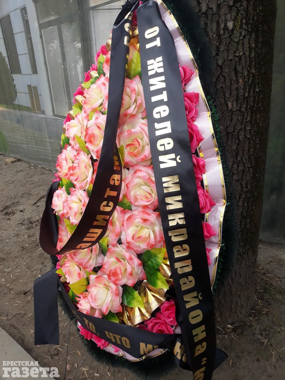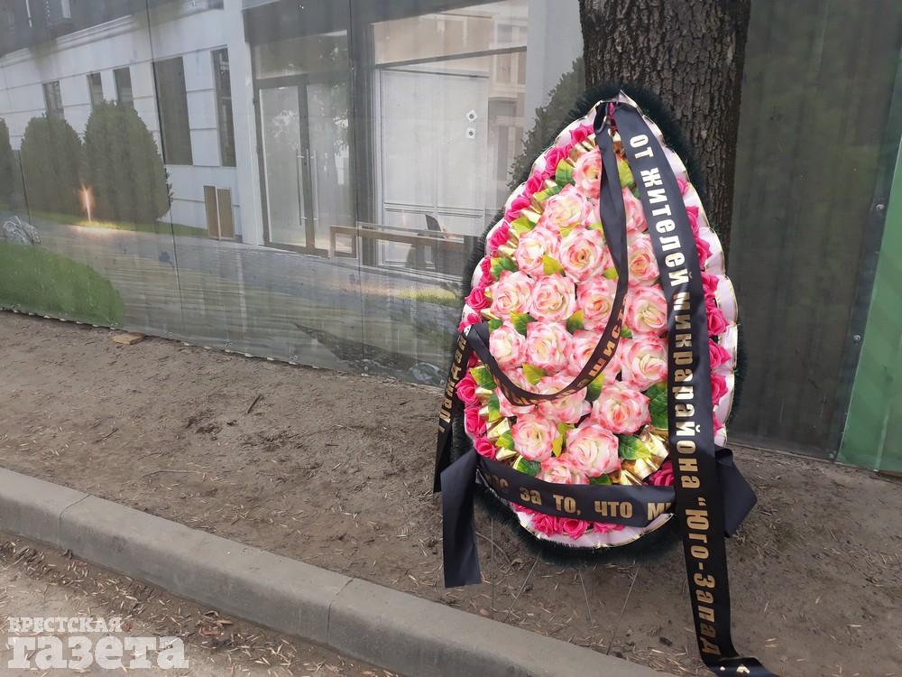«Простите нас за то, что мы не сразу опомнились», «Гражданам Бреста, зверски убитым фашистами в годы ВОВ», — такие надписи размещены на лентах. По словам Виталия Казака, он изготовил их за свой счет, но каждый венок подписан от жителей одного из микрорайонов города.