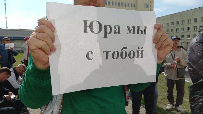 Люди пришли к больнице поддержать Юрия Корзуна. Фото: t.me/stachkom