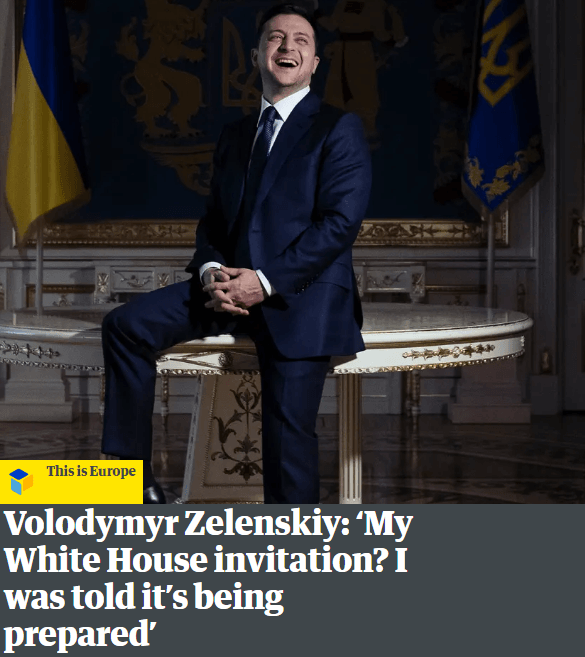 Статья с заголовком «Владимир Зеленский: «Мое приглашение в Белый дом? Мне сказали, что оно готовится» выйдет в номере журнала от 7 марта. На обложке — президент Украины, который сидит на столе и смеется.