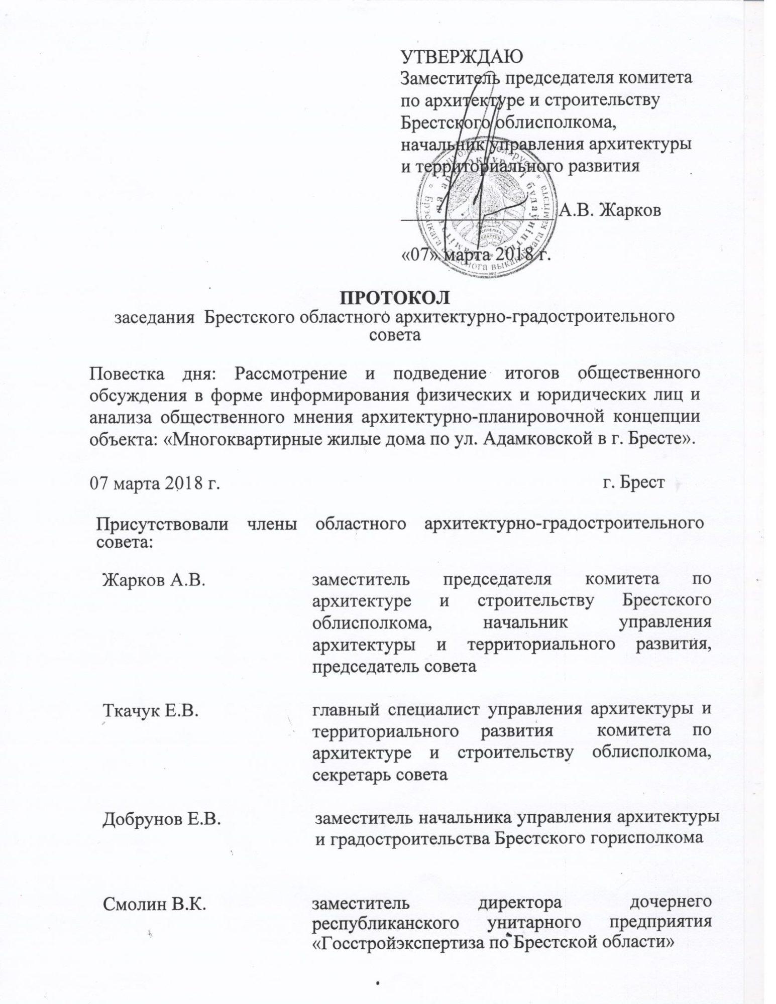 На заседании 7 марта 2018 года Брестский областной архитектурно-градостроительный совет принял решение возводить дома. При этом в решение были включены требования, касающиеся территории школы №27 и близлежащих учебных учреждений.