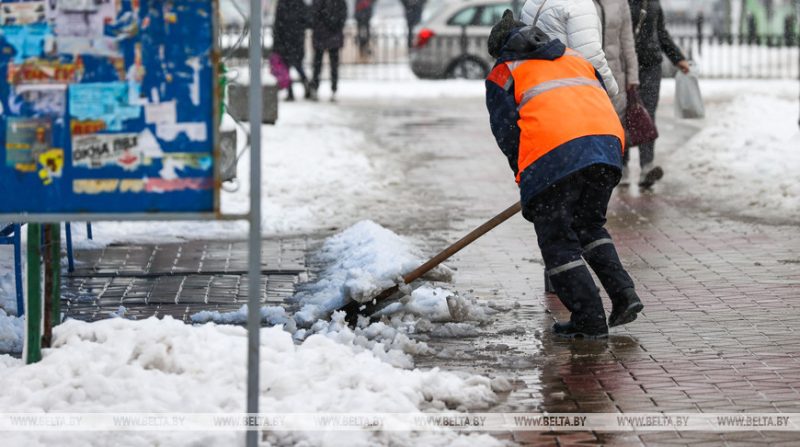 С 18 ноября коммунальные службы работают в круглосуточном режиме. Погода нестабильная, варьируется от слабого плюса к небольшому минусу, поэтому возникает гололед. Об этом БелТА рассказал заместитель директора по санитарии ПКУП «Коммунальник» Олег Нестерчук.