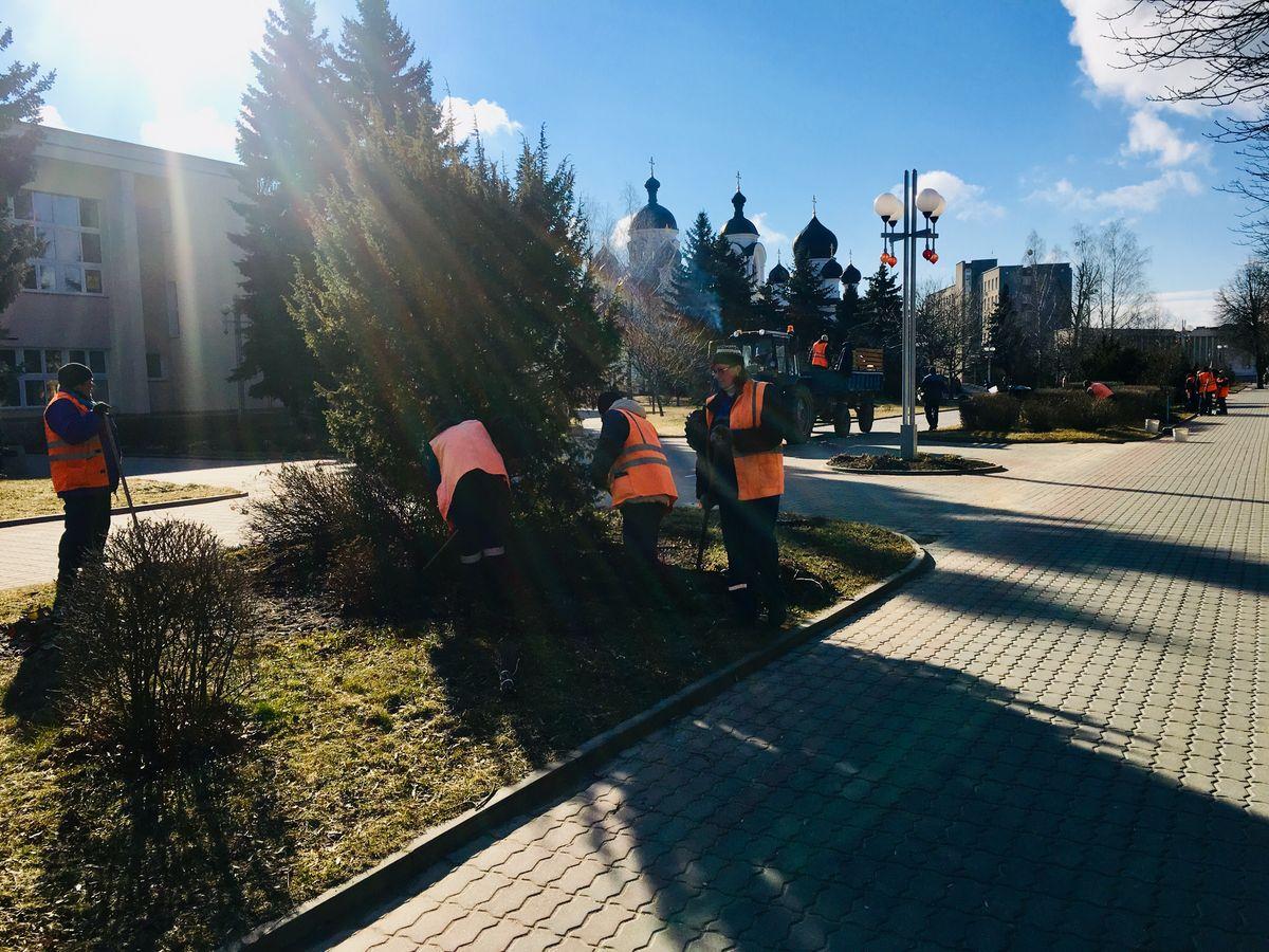 К наведению порядка подключились предприятия. На здании «Белтелекома» обновили фирменную эмблему, на территории завода «Торгмаш» покрасили столбы, заменили выцветшие за зиму билборды. Представители службы озеленения городского ЖКХ приводят в порядок городские клумбы и газоны.