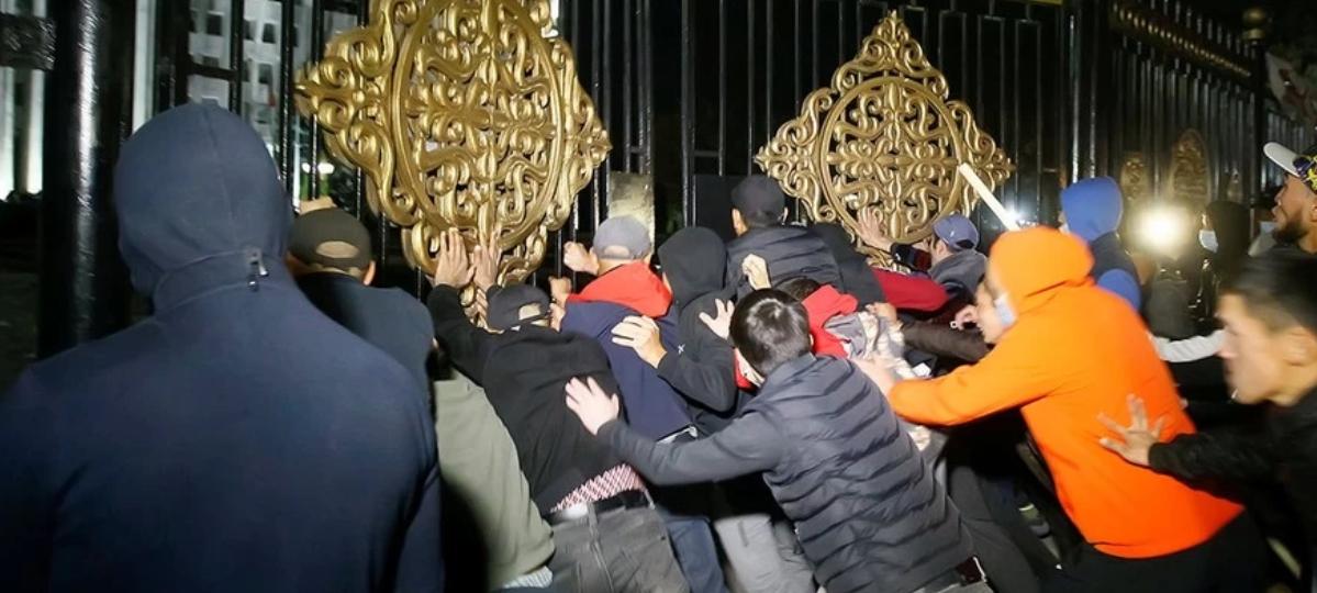 Часть митингующих двинулась в сторону Белого дома, где расположен парламент и администрация президента Киргизии, и попыталась его взять штурмом.