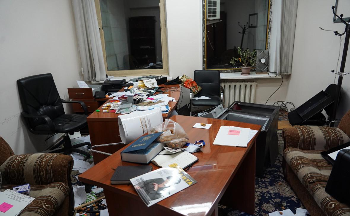 На территории, примыкающей к зданию были подожжены несколько автомобилей, в том числе — патрульной службы МВД, а также шесть карет скорой помощи. Кабинеты сотрудников администрации также загорелись, к тушению были подключены три пожарных расчета.