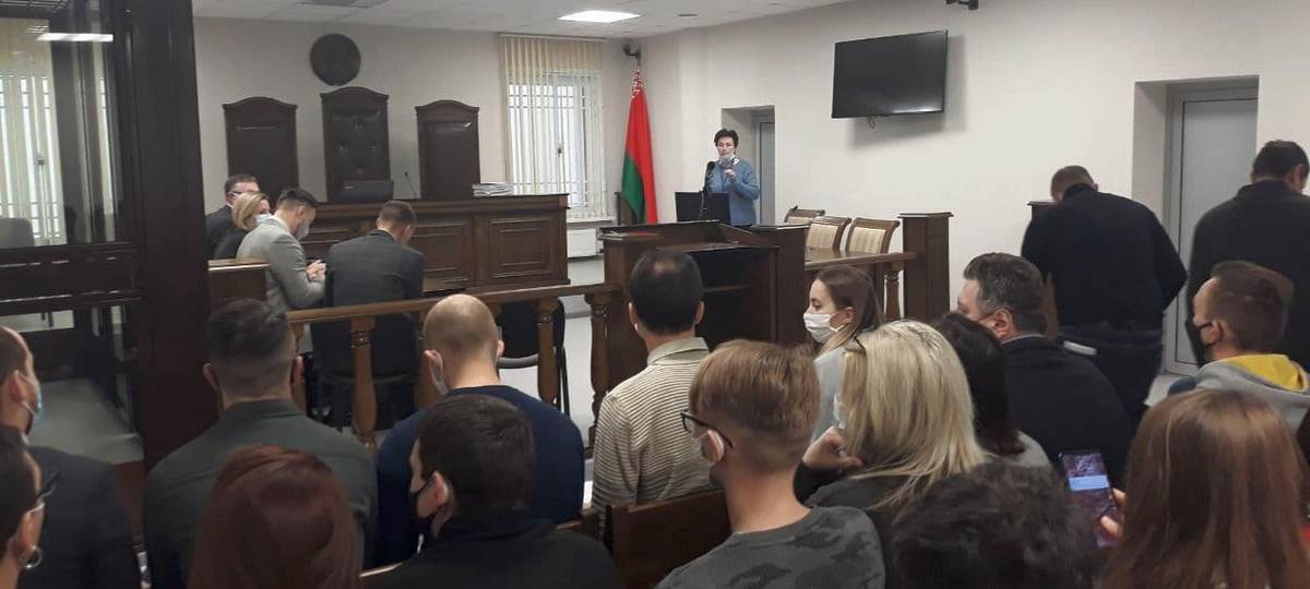 На скамье подсудимых — Николай Федоренко, Ярослав Ярошук, Евгений Колпачик, Виктор Денисенко, Виталий Литвин, Максим Жаров, Марина Глазова, Вадим Воронович, Алексей Якубук и Марина Сирецан.