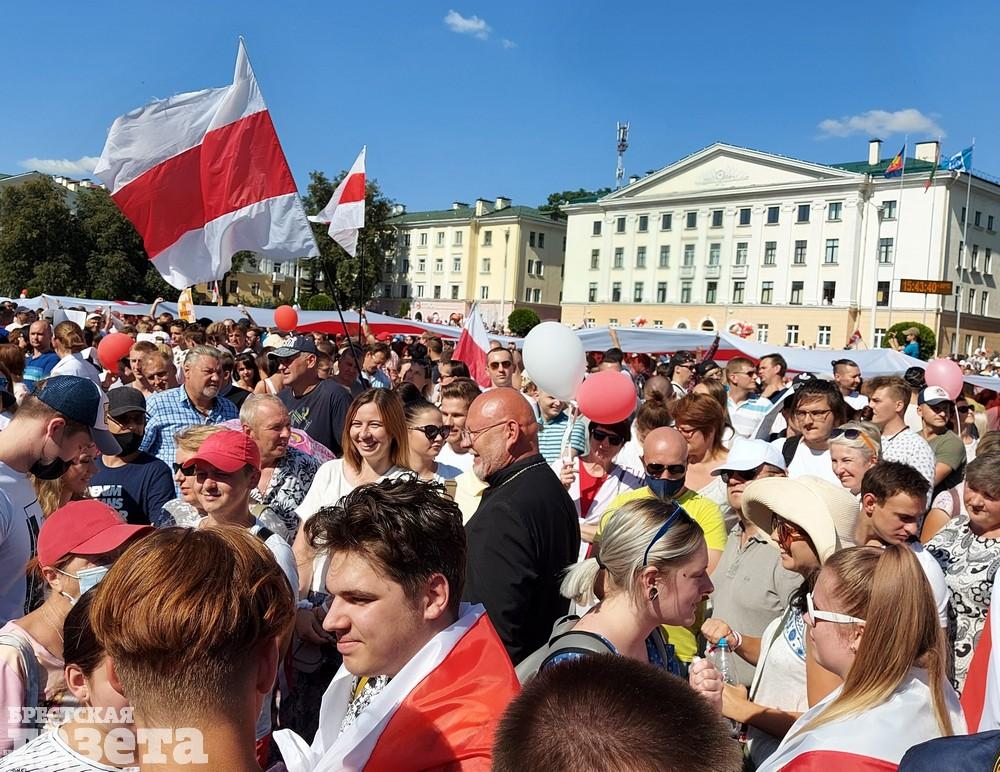 В Бресте 16 августа люди вновь собрались в центре города в знак протеста против официальных итогов выборов.