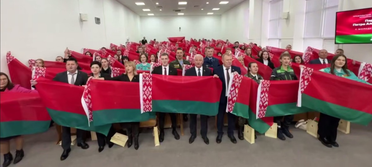 Для флешмоба несколько десятков людей собрались в актовом зале, каждый взял с собой по флагу. В первом ряду стоял и глава Брестского облисполкома Петр Пархомчик. В официальном телеграм-канале Брестского облисполкома видео опубликовали 18 ноября.
