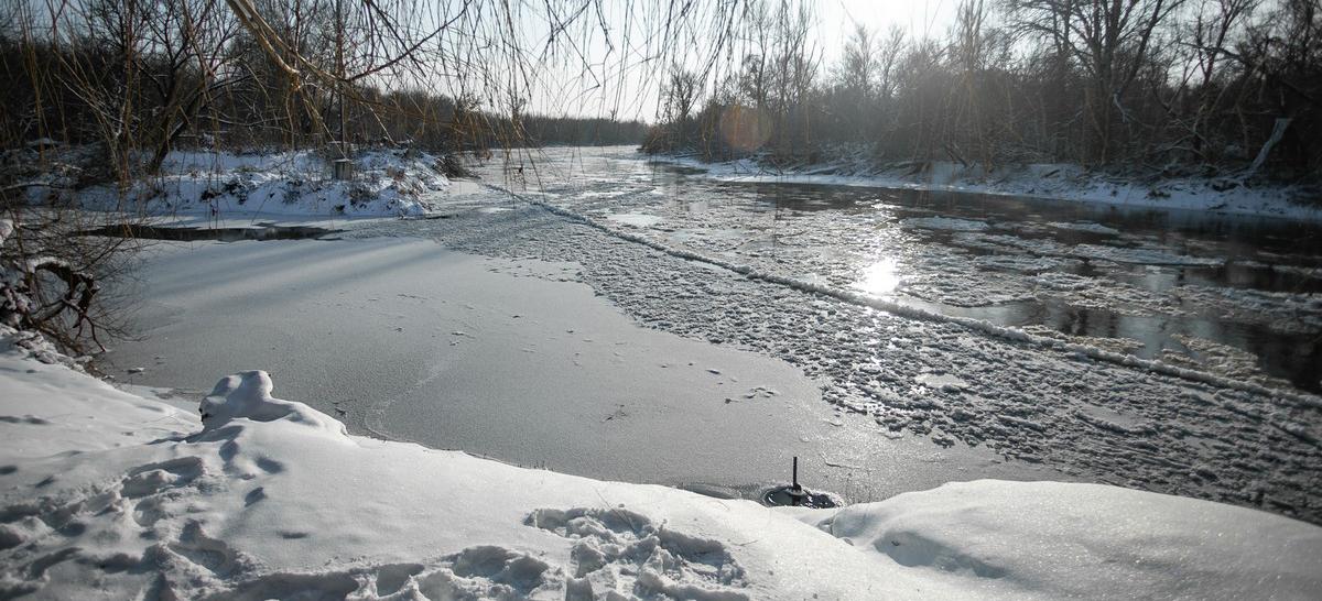 Ледяные глыбы на БугеДым над водойПоворот реки Западный БугРека Буг и мост на Тереспольское укрепление
