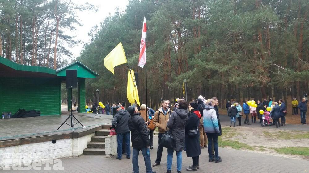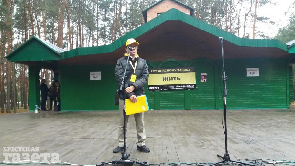 Во время митинга избирателей познакомили с предвыборной программой кандидата, в которой, в частности, содержится требование прекратить строительство и окончательно закрыть аккумуляторный завод «АйПауэр» под Брестом.