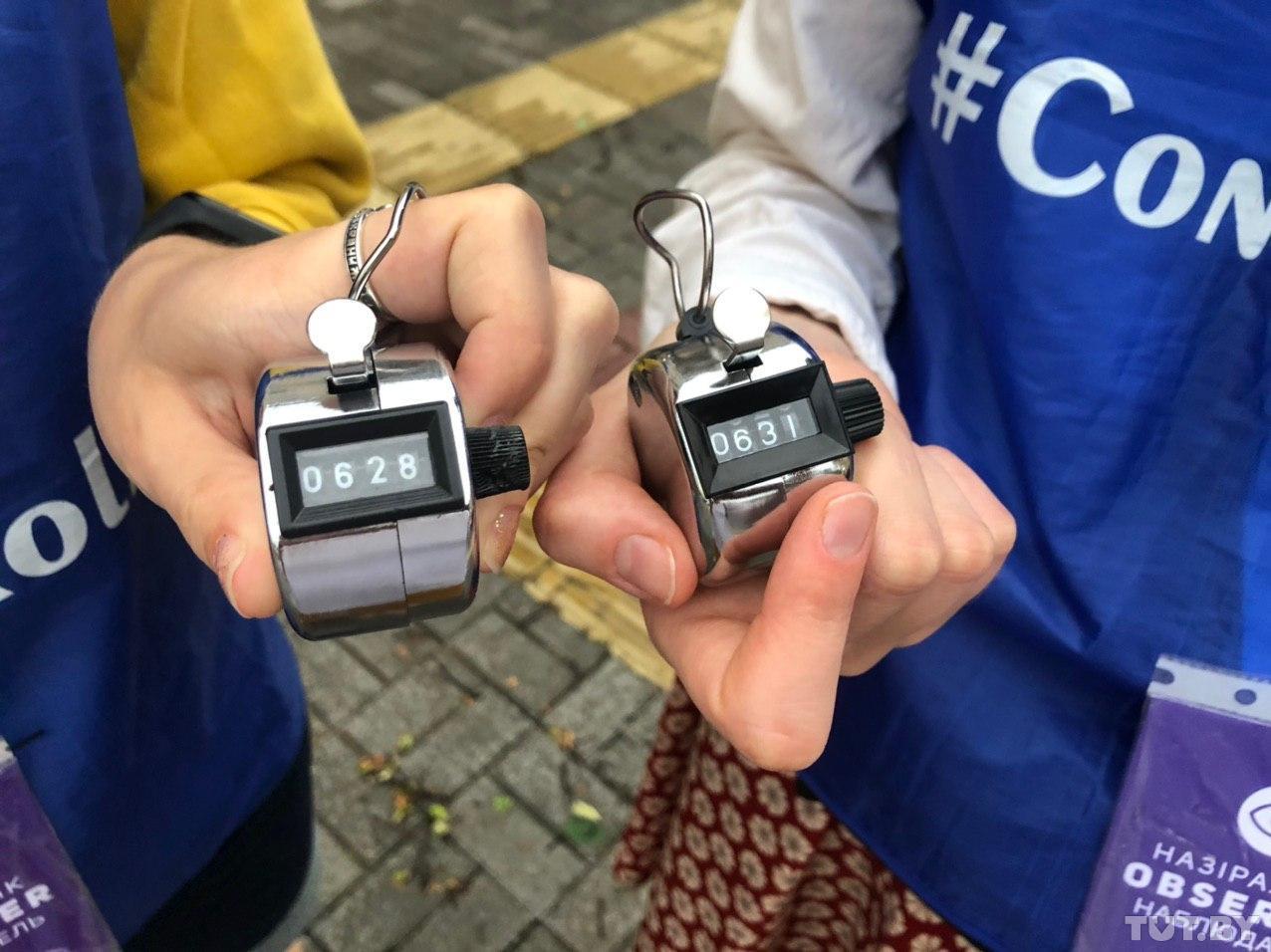 Подсчет со счетчиками вели не только независимые наблюдатели, но и сотрудники милиции в штатском, которые снимали на видео каждого человека в очереди, обходя ее от начала и до конца. О точном количестве участников позже скажут не только наблюдатели, но и МВД.
