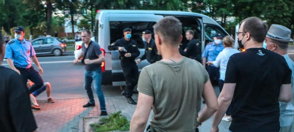 Потасовка людей в «цепи солидарности» и сотрудников ОМОН произошла вечером 19 июня в центре Молодечно. На месте работали журналисты местного издания «Рэгіянальная газета». Фотограф Анастасия Уткина рассказала порталу, как развивались события: