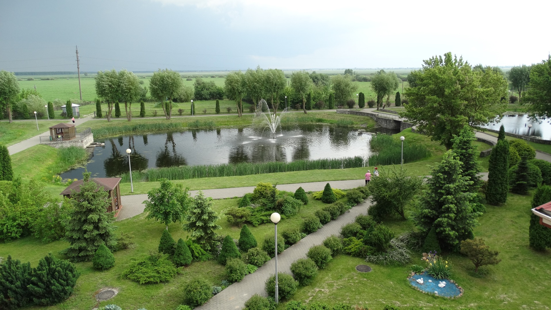 Санаторий расположен в 10-и км от Пинска Брестской области в красивой лесопарковой зоне с декоративными кустарниками, цветниками и тремя прекрасными водоемами.