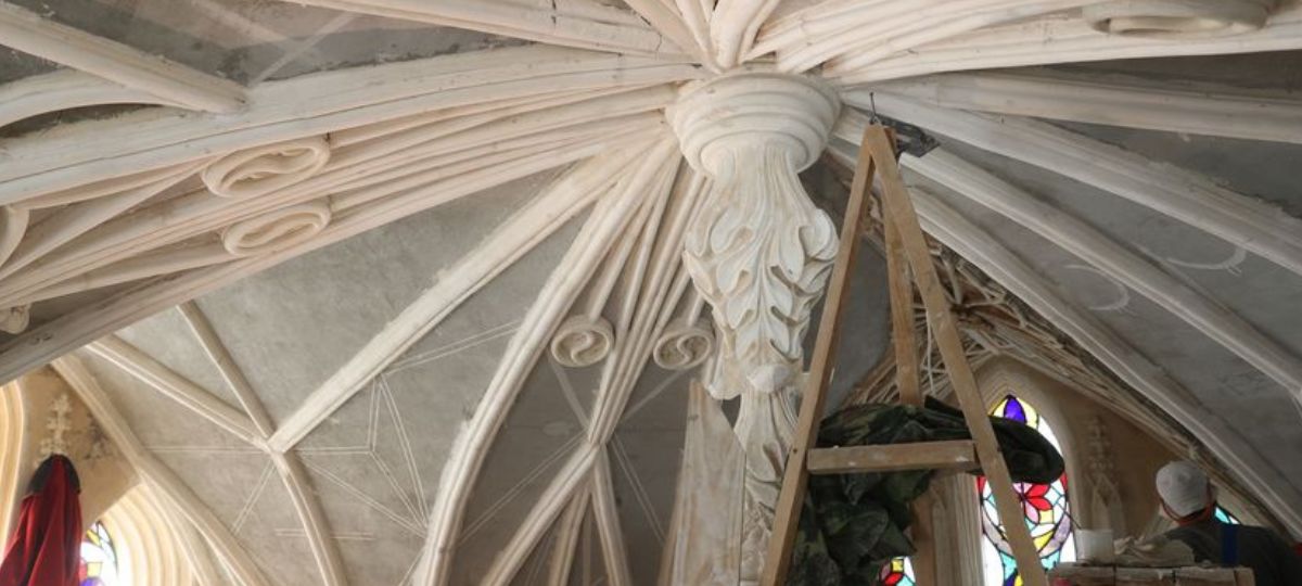 После открытия каплица сможет принимать туристов не только снаружи, но и внутри — там планируется экспозиция. Главная «изюминка» интерьера — кружевная лепнина, которой мастера возвращают былое великолепие.