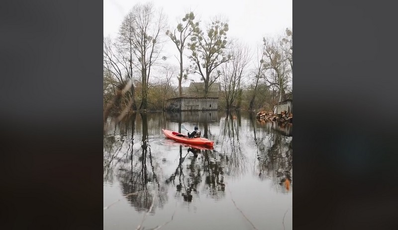 Он поплавал по затопленной деревне и снял виды, которые впечатлили его подписчиков.