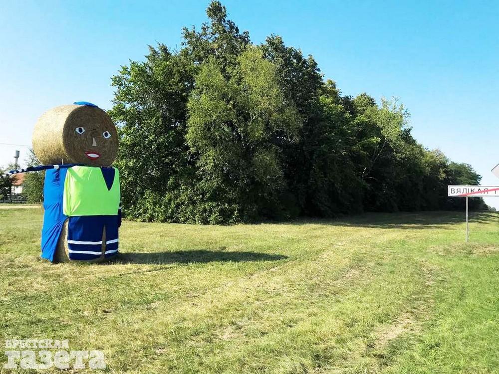 Соломенного сотрудника ГАИ соорудили у агрогородка Турна Большая (кстати, установлен он перед камерой фотофиксации скорости).