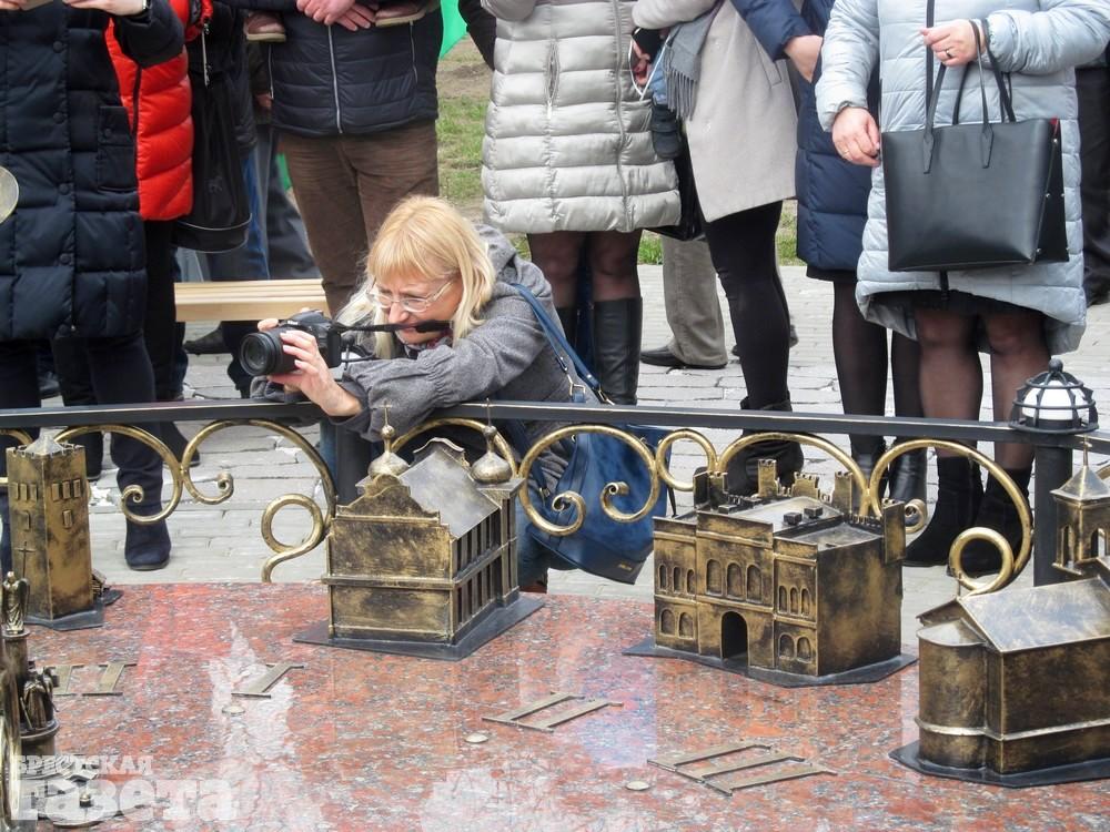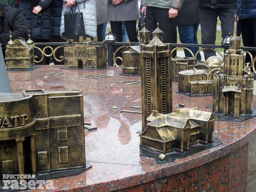 В Бресте на набережной Франциска Скорины 22 марта состоялось торжественное открытие нового арт-объекта – солнечных часов, на которых размещены уменьшенные копии знаковых объектов города над Бугом, таких как Холмские ворота, здание ЦУМа, вокзал, памятник Тысячелетию.