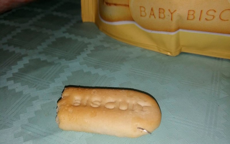 Молодая мама из Барановичей Вероника Чечоро купила своему маленькому сыну детское печенье, которое легко тает в воде или молоке. Но в нем оказалась проволока. Женщина обратилась на «Слодыч» с претензией, но ей ответили, что это, скорее всего, случайность. Но женщина настаивает на проверке производства, пишет «Наш край».